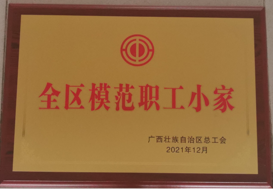 近日,从自治区总工会《关于确认2021 年全区模范职工之家、全区模范职工小家、全区优秀工会工作者名单的通报》(桂工发〔2021〕38 号)喜获,我校化学化工学院分工会被确认为“全区模范职工小家”荣誉称号。
