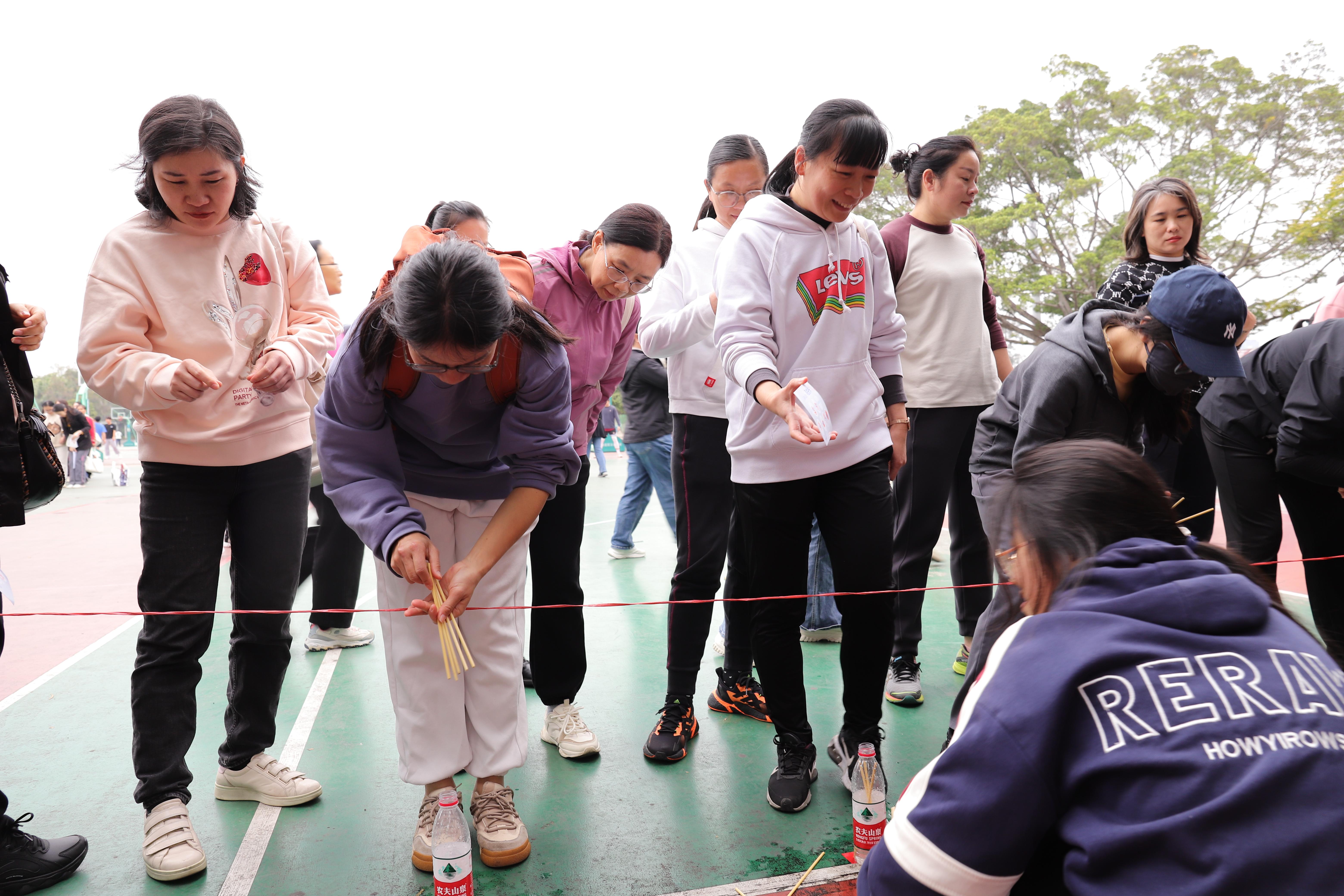 本次趣味运动会内容丰富多彩,共设置了7个项目。其中,“才”源滚滚项目的滚铁环让大家回到了童年简单而快乐的时光;同心击鼓项目发扬了协作互助精神,展现了女教职工的凝聚力和积极向上的风貌。运动会精彩纷呈,女教职工们热情高涨、活力四射、配合默契、彼此加油,欢声笑语响彻运动场。全校34个分工会近600名女教职工组队参加了趣味运动会。