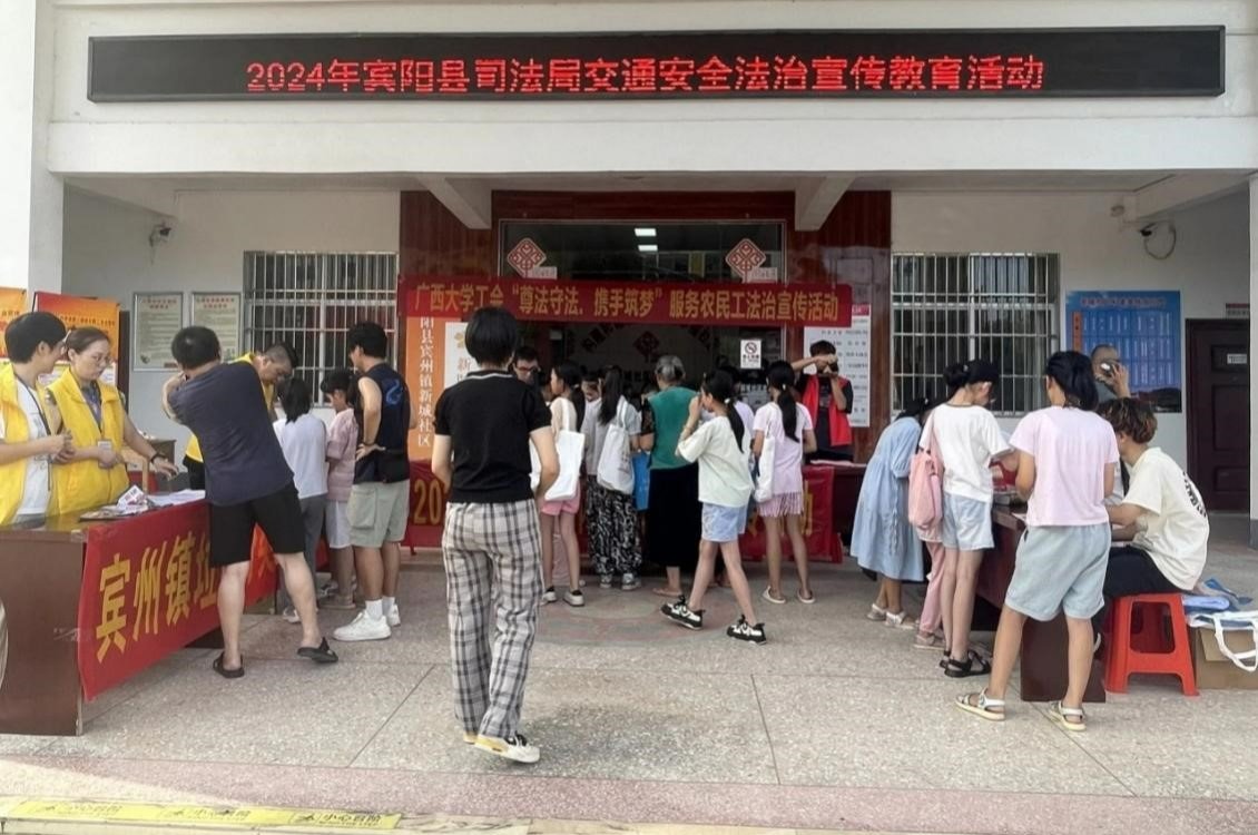 7月24日至7月27日,beats365(中国区)-唯一官方网站工会组织学生志愿者一行21人到宾阳县宾州镇新城党群社区开展普法活动。