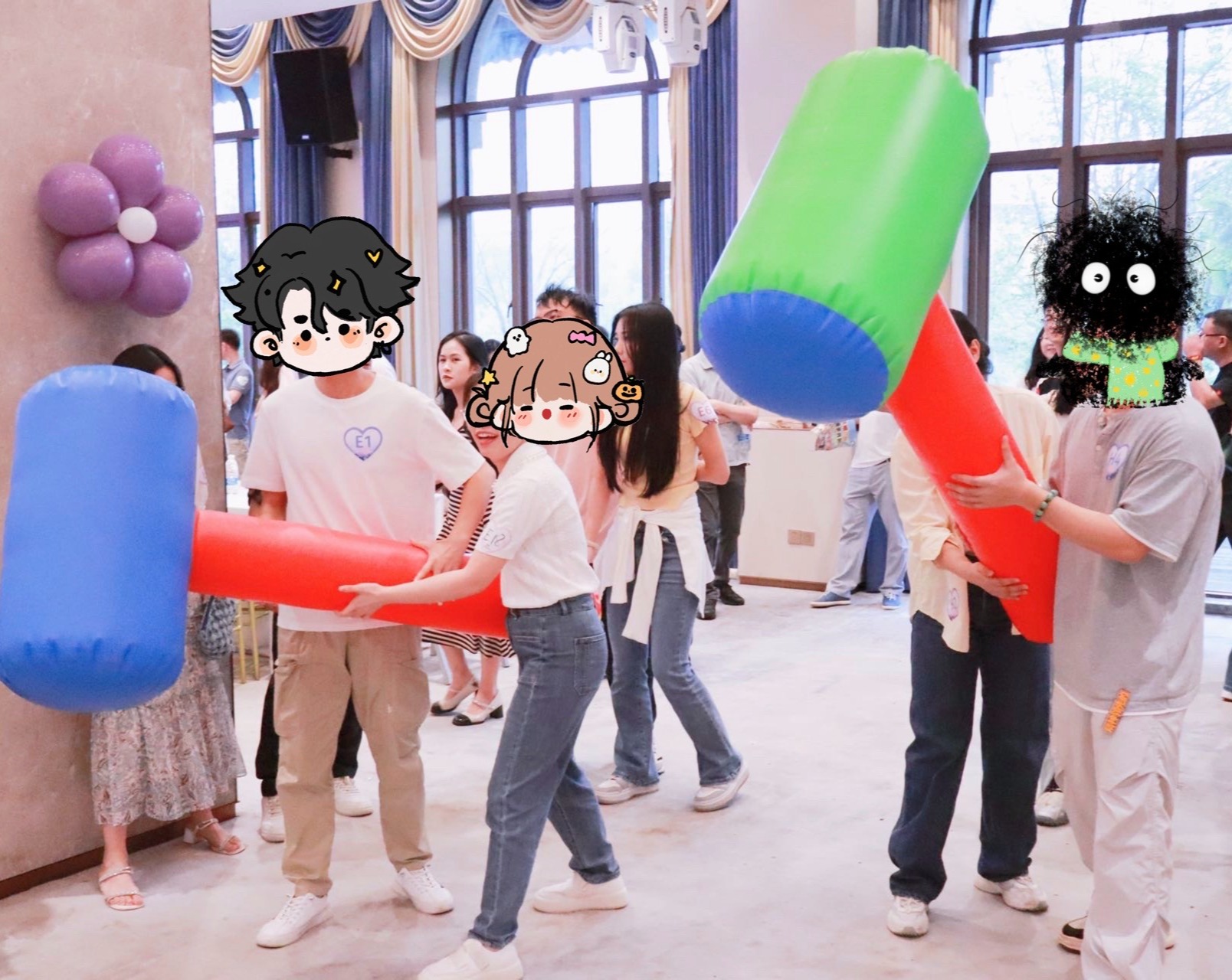 紧接着,“高手挑战”、“光速出圈”、“大锤小用”、“拜拜游泳圈”等创意游戏轮番登场,青年职工们在合作中逐渐熟络,现场掌声与笑声此起彼伏。