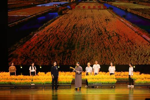 在第二篇章“奠基伟业 美丽中国”中,情景剧《禾下乘凉梦》和舞蹈《丰收的喜悦》等节目,展现了我国农业发展历程和农民的丰收喜悦,体现了师生们对科学家精神的崇高敬意和对农业发展的关注。