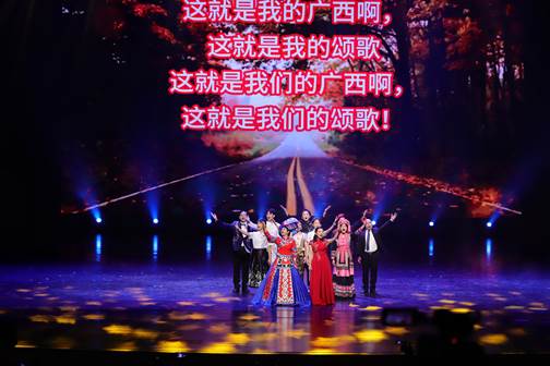 第三篇章“壮美广西 盛世中国”聚焦广西的壮美山水和多元文化,通过歌舞、朗诵、民乐合奏、瑶族女子群舞、民族走秀、合唱等形式,展现了广西的独特魅力和对祖国的深情厚谊。特别是《欢迎你到广西来》和《壮乡情谊献祖国》两个节目,不仅展现了广西的自然风光和民族文化,更表达了广西人民对祖国的热爱和对美好生活的向往。