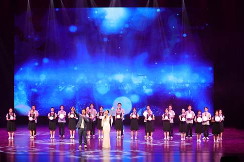 晚会在附属中学、君武小学师生带来的歌舞《今天是你的生日,中国》中拉开序幕。